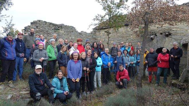 En la plaza de Margurgued, alrededor de la hoguera -todavía encendida- de la fiesta de San Antón, nos reunimos en la mañana del pasado domingo 45 personas de distintas localidades de Sobrarbe y de otros lugares de Aragón, para participar en la excursión por los pueblos y senderos del bajo Ara, que organizaban dos de los clubes de montaña de esta comarca: Nabaín y CAS. El calor de la ‘chera’ fue el presagio de la estupenda jornada que íbamos a disfrutar.
