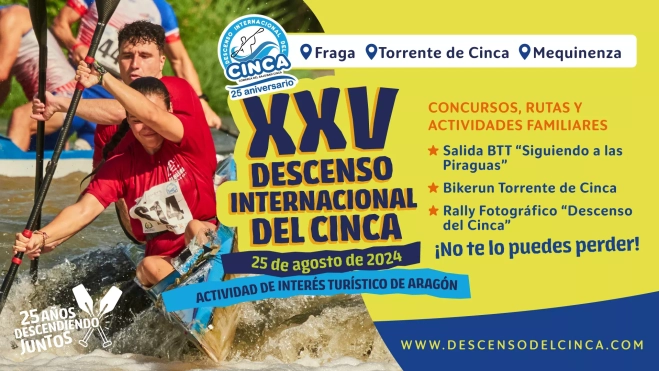 Entre las actividades destacadas para el 25 de agosto se incluyen la Salida BTT “Siguiendo a las Piraguas”, un recorrido a lo largo de los caminos junto al río, que concluirá en Torrente de Cinca; la actividad Bikerun Torrente de Cinca, una ruta andando con punto de encuentro en el ayuntamiento de Torrente hasta la zona de avituallamiento en el río; un recorrido atlético junto al río en el trayecto de Fraga a Torrente de Cinca para acompañar corriendo a los participantes; una jornada divertida en familia con la actuación y animación de la charanga; el Rally Fotográfico “Descenso del Cinca”, un concurso de fotografía digital en el que los participantes podrán capturar los momentos más destacados del Descenso; y un concurso al mejor atuendo y disfraz de los participantes populares.