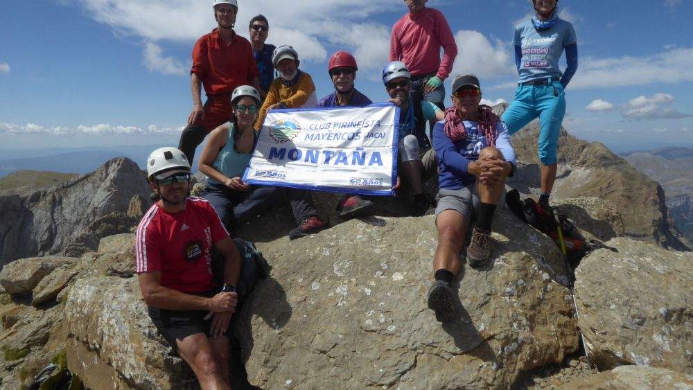 Nueva salida estival para la Sección de Montaña del CP Mayencos y, en esta ocasión, le ha llevado a ascender la pala de Alcañiz o pico Bucuesa. En total han sido once integrantes del grupo, que se dirigieron el pasado sábado a Acumuer para subir por la pista que les llevaría a un lugar próximo al salto del Churrón, desde donde comenzaban la jornada montañera subiendo a la vera del barranco hasta el precioso circo glaciar de Güerrio, entre los imponentes paredones de las Somolas y el sector más occidental de la sierra de la Partacua, con la pala de los Rayos y la peña Retona.