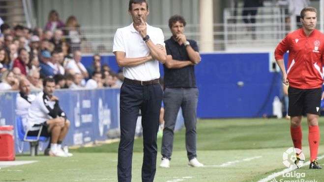 "El Huesca es un gran equipo, pero hoy no le hemos permitido nada. El saque de banda, una contra en la segunda parte, y poco más. El resto del partido ha sido dominado por nosotros. El Huesca es un gran equipo, Cuco es un gran entrenador pero creo que hoy el fútbol ha sido completamente injusto con nosotros". "Ha habido un momento del partido en que no pensaba hacer ninguno, porque estábamos muy bien, pero es complicado. Igual puedes cambiar algo la dinámica o algún resorte. Estábamos engranando bien con Raba, con Fede Vico. He quitado a Raba y hemos enganchado un poco menos. Los últimos minutos nos hemos precipitado por los nervios, ha habido pérdidas... Sería hacer un balance de una parte del partido, pero en el primer tiempo hemos tenido la de José, la de Nyom. Igual que en Lugo, si jugamos diez veces, ganamos siete u ocho. El fútbol no nos está dando nada. Tenemos que seguir... Estoy convencido de que van a llegar las victorias si no dudamos".