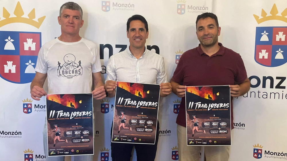 El concejal de Deportes, Eliseo Martín, el presidente Biofrutal Sport, Marcos Barranco, y el director técnico, Sergio Brazo, han presentado la segunda edición de la Trail Las Loberas Monzón-Desafío nocturno, que se celebrará el próximo sábado, día 7 de junio, a partir de las 21:00h con la 5K familiar, que se adelanta en horario a petición de los participantes.