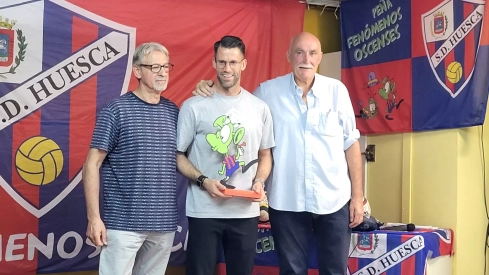 Un baño de masas merecido. Dani Jiménez, portero de la SD Huesca, ha recogido este miércoles el Trofeo "Fenómeno" de la temporada 2024/25 después de ganar "por goleada" en la votación de la junta de la Peña Fenómenos Oscenses, la más numerosa. El guardameta azulgrana, que aunque sea de Lebrija ya se siente "un oscense más", ha dado un discurso muy emotivo ante decenas de socios de la peña y aficionados. "Somos pocos, pero somos muy fieles", añadía después de recoger el galardón y el jamón de la emblemática peña azulgrana que le acreditan como el mejor jugador de la temporada pasada.