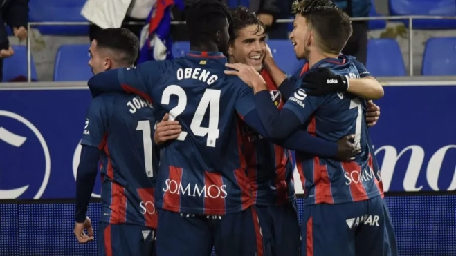 Por fin. Noche grande en El Alcoraz, que este domingo se ha quitado un enorme peso de encima al ver la primera victoria de la temporada de la SD Huesca como local. El equipo de Antonio Hidalgo no ha tenido que pagar lo que ha perdonado antes de llevarse los tres puntos, porque ha mostrado una versión fiable en defensa y lo ha combinado con mucha más pegada que en anteriores comparecencias. En la retina queda el intenso trabajo hasta el último segundo y la liberación con el pitido final, visible en los jugadores sobre el césped.
