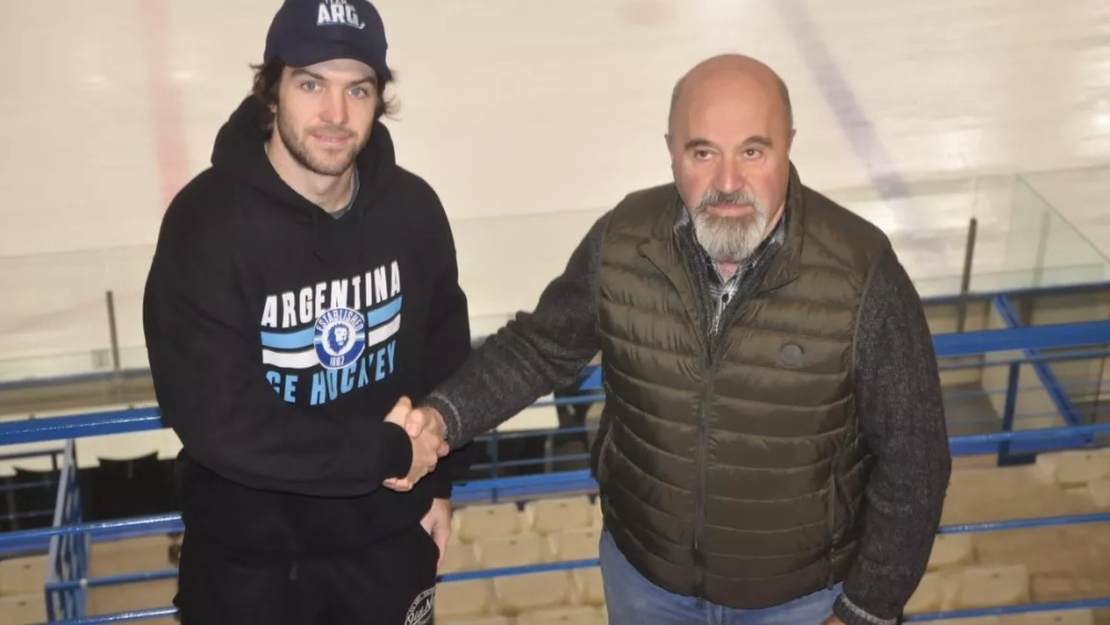 Owen Haiek, delantero argentino de 24 años, ha sido presentado como nuevo jugador del Club Hielo Jaca, en compañía del presidente del club, Antonio Betrán, y el vocal Antonio Lecuona, durante el acto organizado este lunes en el pabellón de hielo.