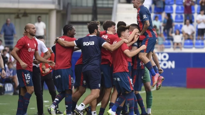 Sociedad Deportiva Huesca: Álvaro Fernández, Juanjo Nieto, Loureiro, Jorge Pulido, Iván Martos (Ignasi Vilarrasa), Óscar Sielva, Javi Martínez, Javi Mier (Kento Hashimoto), Rafa Tresaco (Gerard Valentín) (Kanté), Hugo Vallejo (Joaquín Muñoz) y Samuel Obeng.
