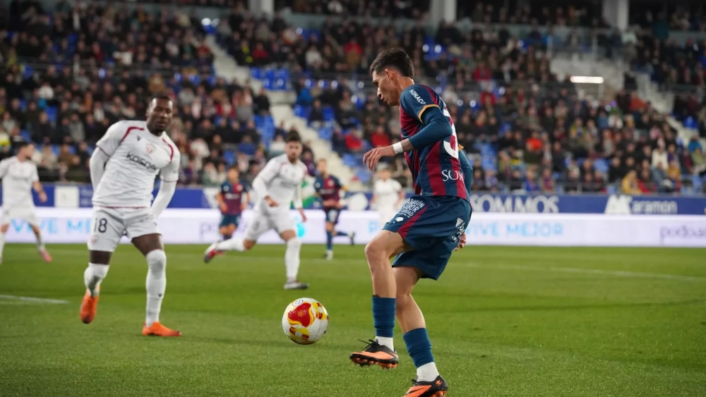 Al igual que el viernes, gran inicio del Huesca que presentaba un 4-4-1-1 en fase defensiva, con Willy como segundo punta por detrás de Sergi Enrich. Bolo, como era lógico, apostaba por numerosos cambios con tan sólo Pulido, Jesús Álvarez y Enrich de los habituales. Liberto ha actuado a banda natural (izquierda), mientras que Luna lo hacía a banda cambiada. El Huesca lograba robar en campo contrario y encaraba en el balcón del área, sobre todo por el costado izquierdo Ro y Liberto muy participativos.