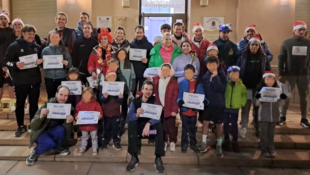 En una tarde-noche muy fría en Ayerbe, numeroso público se acercó a las puertas del Ayuntamiento para disfrutar de la tradicional carrera San Silvestre “Carnicraba”.