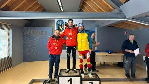 Tras Noel Burgos, el podio masculino se ha completado con el miembro de la Selección Aragonesa Daniel Izquierdo Alonso, del club Peña Guara y David Luna Sánchez, otro miembro del Equipo Militar de Esquí y Montaña.
