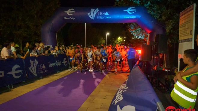 Este fin de semana se ha celebrado en la localidad zaragozana de Sobradiel la sexta edición de su Duatlón Nocturno. Se trata de una de las competiciones más singulares del calendario de triatlón aragonés, la cual se desarrolla en horario nocturno bajo la luz de la luna y los frontales de los deportistas. En esta ocasión participaron 82 deportistas que tuvieron que afrontar 4,4 kilómetros de carrera a pie, 15 kilómetros de bicicleta de montaña, y 2,2 kilómetros de carrera a pie.