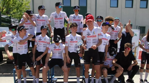 A la carrera cadete, vista la línea de salida, solo había que poner el nombre del ganador. El Ecotisa ha copado las seis primeras posiciones de la clasificación general después de completar el trayecto de 50,4 kilómetros en un tiempo de 1:20:00. Y el primero en cruzar la línea de meta ha sido Iker Maza, que ha estado escoltado en el podio por sus compañeros Marco Alloza y Lorien Mercado.