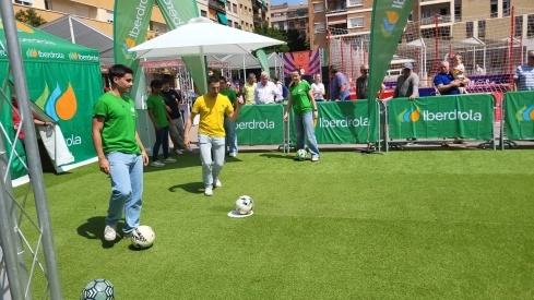 La Fan Zone ha convertido la Plaza de San Antonio en un espacio de diversión, de prácticas de habilidad, de exhibición de copas, de exposición de paneles con imágenes de las jugadoras, de sorteos y de repartido de banderolas que han sido recogidas por muchos oscenses. Un lugar para dar cuatro golpes al balón e intentar meterlo en los círculos y para jugar al ritmo de la música o firmar junto a las Copas para desear lo mejor a sus equipos ante la final de la Copa del Rey que disputan desde las 19 horas del sábado Barcelona y Atlético de Madrid.