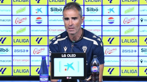 El entrenador del Cádiz CF, Gaizka Garitano, atendió a los medios de comunicación en la sala de prensa de la Ciudad Deportiva en la previa de la 41ª jornada de LALIGA Hypermotion, que enfrentará al equipo amarillo con la SD Huesca.
