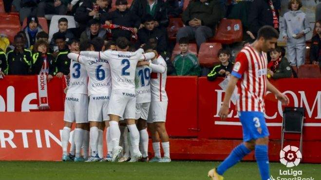 Él error ha sido tan grosero, como algunos posteriores en defensa, que la leve inspiración de la presencia de Óscar Sielva se ha difuminado en el dibujo imposible del Cuco. Reitero. No es un 5-41-. Es un 5-2-3, porque Joaquín es extremo y Juan Carlos lleva muchos partidos pidiendo a gritos alguna suplencia. Se defiende desde arriba y nuestro centro del campo es débil en efectivos. Los dos últimos del general Cústers en Montana contra las hordas de Caballo Loco y Toro Sentado. Que son una riada de indias frente a la flaqueza del Huesca. Y, dicho y hecho, a partir de ahí casi hora y cuarto de sufrimiento inmisericorde. Todo por un centro-chut a la malla. En este fútbol tan horizontal que los ataques acaban en el portero propio, Pedro Díaz lo ha visto tan claro que ha depositado el cuero tan suavemente en la red que ha parecido un beso. Quizás es porque llega San Valentín.