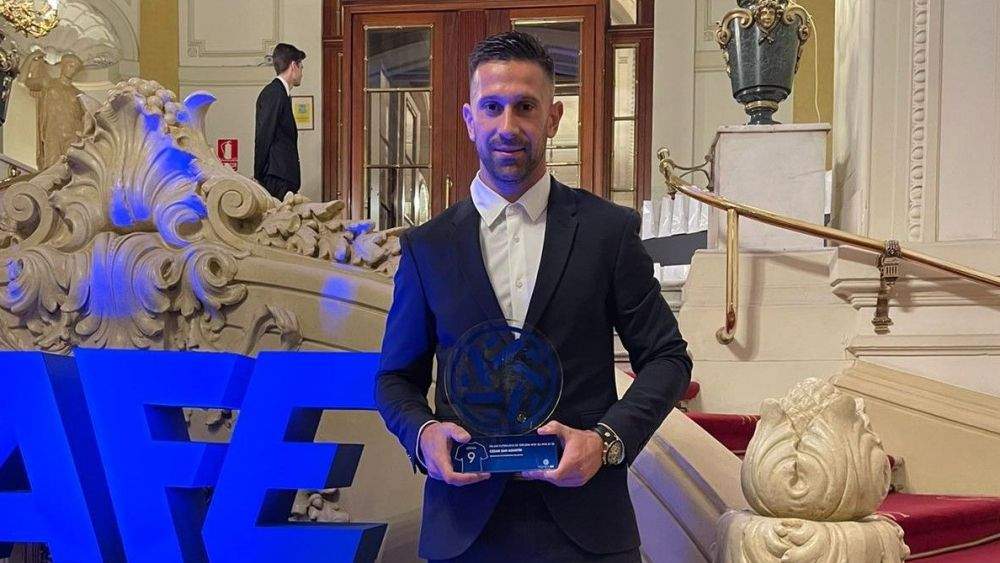 El pichichi del grupo aragonés de Tercera RFEF de la pasada temporada y jugador del CD Binéfar, César San Agustín, recogió el lunes un galardón en la primera gala de los Premios AFE. Junto al delantero celestes resaltan otros premiados como Karim Benzema (jugador del Real Madrid), Jonathan Viera (UD Las Palmas) o Alexia Putellas (FC Barcelona).