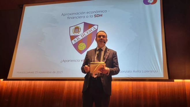 El economista Gonzalo Ávila Lizeranzu ha considerado que la Sociedad Deportiva Huesca ha de poner las bases "para la consolidación como un equipo ascensor" con ventajas competitivas relevantes respecto a otros clubes de Segunda División, aunque para ello habrá de concluir el proceso de ajuste en la presente temporada y la venidera, frente a la degradación considerable que ha padecido desde el descenso de la Primera División. El conferenciante ha especificado el déficit de la temporada 22-23, por encima del anunciado, hasta 7.825.000 euros tras unos ingresos de 13.311.000 (una subida del 2,8 %) y gastos or 21.136.000 euros (8,6 % de incremento).