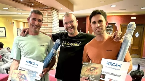 Campeones: la pareja de Pescadores del Pirineo y Mayencos (Aragón) Nicolás Abadía y David Capablo con 74 truchas y 79 puntos por puestos y pieza mayor de 32 cm.