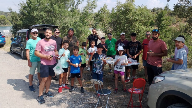 Comenzó la actividad concentrándose los participantes y sus familiares en el parquin del restaurante El Chopo a las nueve de la mañana, desde dónde se dirigieron al punto de pesca. El día acompañó pues amaneció ligeramente nublado, lo que hizo mucho más agradable la actividad que normalmente discurre a pleno sol; esta circunstancia también propició que las truchas estuvieran más activas. Tras preparar las cañas en las distintas modalidades permitidas: cucharilla, pesca a ninfa y pesca a cebo, comenzó la actividad ante la impaciencia de los niños que no podían resistirse a lanzar los aparejos al agua. Las capturas comenzaron de inmediato aumentando la excitación de nuestros jóvenes deportistas que no dudaban en probar lances en distintas zonas cuando la frecuencia de las capturas iba disminuyendo.