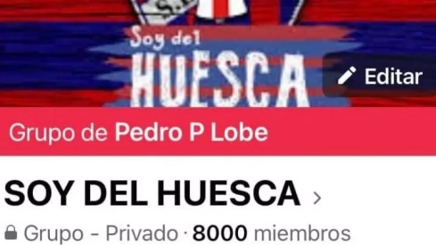 El Grupo de Facebook Soy del Huesca ha alcanzado este pasado fin de semana los 8.000 socios, con lo que se erige en la mayor agrupación en redes sociales en torno a la Sociedad Deportiva Huesca. Todo comenzó en 2014, "cuando estábamos en Segunda B", cuando Pedro Pérez Lobe apostó por este medio para la comunicación con amigos".