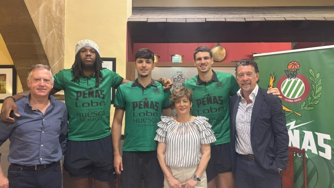 Guillem Vázquez, Daniil Shelist y Mohamed Abdulsalam han comparecido en La Lifara, restaurante oscense en la calle Tarbes", con Luis Périz, directivo del club, y han reconocido que la semana se les está haciendo eterna