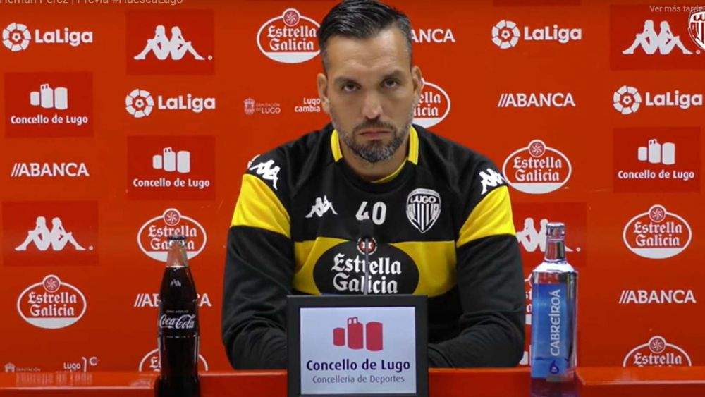 Responde a un colega lucense sobre la estadística en los Huesca-Lugo en Segunda División: 6 de 6 para los oscenses. "No vamos a estar toda la vida con esos números. Cada vez que pasa eso, estamos más cerca de mejorarlo. Esperemos que se hayan gastado todas esas balas y seamos certeros. El equipo está en buena dinámica, sabe cuál es su problema, que es dejar la portería a cero".
