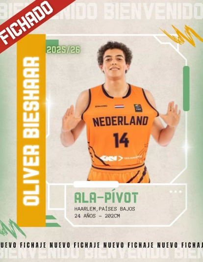 El holandés Oliver Bieshaar, de 23 años de edad, se incorpora al Lobe Huesca la Magia para ofrecer su experiencia en Segunda FEB y su calidad como contrastado ala-pivot que pone al servicio del conjunto su fortaleza con 2,02 metros.