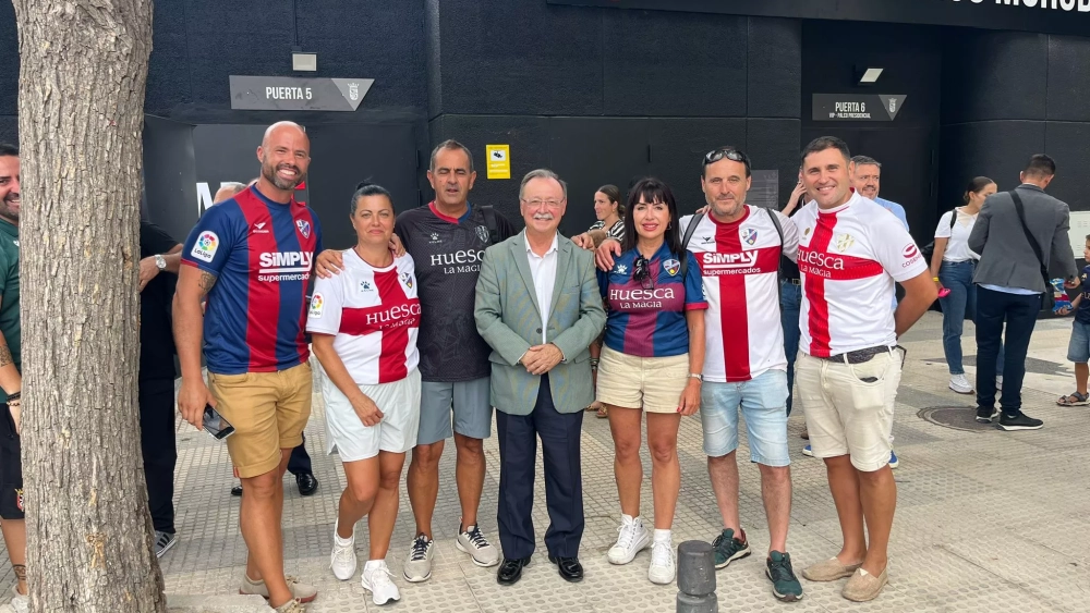 Una expresión espectacular de esta afabilidad fue la conversión del hermoso Himno del Sevilla, de El Arrebato, para su adaptación al Huesca, con acento andaluz. Ahí va la letra: "Y es por eso que yo voy a verte/ y del Huesca seré hasta la muerte/ San Jorge se rinde orgulloso/ de ver a su Huesca, a su Huesca jugar/. Ole con ole, viva Aragón/ Os espero aquí a la peña". No faltaba ni siquiera la publicidad postrera.