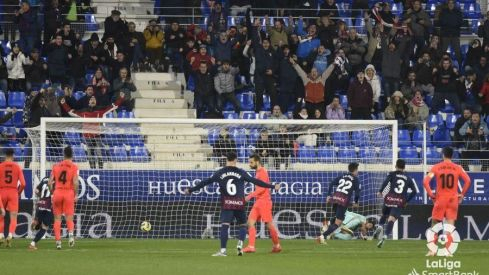 Se desprendió de la losa de no ganar. Cuatro partidos consecutivos -entre liga y Copa- llevaba la SD Huesca sin vencer. Necesitó un penalti cometido sobre Kanté en la segunda parte que ejecutó a la perfección Juan Carlos para seguir sumando en El Alcoraz y prolongar así una gran racha de nueve fechas seguidas puntuando en casa. Precisamente, ante el Andorra fue la última comparecencia del año ante la afición.
