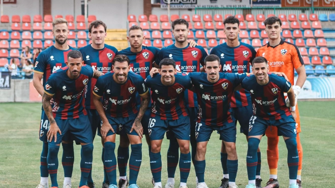 SD Huesca: Dani Martín (Dani Jiménez 46'); Julio Alonso (Ro 62'), Íñigo Piña (Manu Rico 46'), Diego González (Arribas 46'), Pulido, Ángel Pérez (Toni Abad 62'); Sielva, Jesús Álvarez (Ayman 71'), Kortajarena, Dani Ojeda (Willy 24’ (Calvo 71')) y Sergi Enrich (Diego Aznar 30’ (Enol 62').