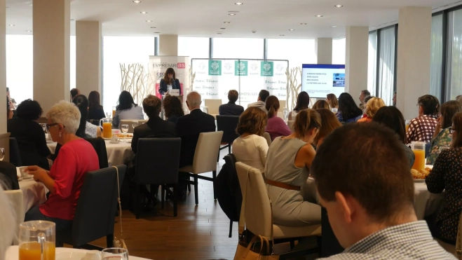 El fútbol femenino oscense ha sido protagonista este martes en el nuevo desayuno coloquio organizado por Amephu, la Asociación de Mujeres Empresarias de la Provincia de Huesca, que se ha celebrado en el Hotel Pedro I con una amplia representación del tejido político, empresarial y social de la provincia de Huesca. Allí ha estado Azucena Garanto, directora del fútbol femenino de la SD Huesca, quien ha recalcado que "el fútbol todo lo-cura"; un juego de palabras que servía para titular el encuentro.