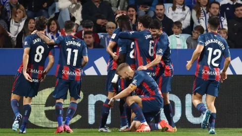 Ha prolongado el colegiado vasco en nueve minutos el partido pero el Huesca apenas ha sufrido antes de celebrar un triunfo que sabe a gloria. Fiesta altoaragonesa.