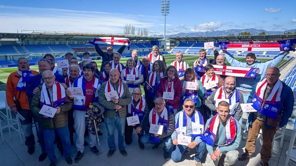 Esta mañana, se han fundido los que celebran 65 años. En realidad, lo hacen cada dos semanas y, a través del corazón, en cada latido. Una cuarentena de los abonados nacidos en 1960 ha recorrido las instalaciones del estadio con el presidente, Agustín Lasaosa, como anfitrión mayor dentro de un equipo que se ha ocupado de agasajar a sus soportes anímicos. Guiados por Joaquín Aineto, director de Marketing del club, y los responsables de Comunicación, Cristian Serrano y Rosa Calvo, han esperado en la explanada apenas unos minutos para una gran cita.