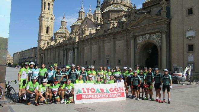 Un total de 45 ciclistas participaron este domingo en la octava edición de la Marcha Mariano Catalán que organiza el Club Ciclista Oscense. Casi medio centenar de ciclistas llegaron hasta la Basílica del Pilar de Zaragoza.