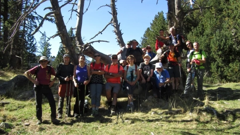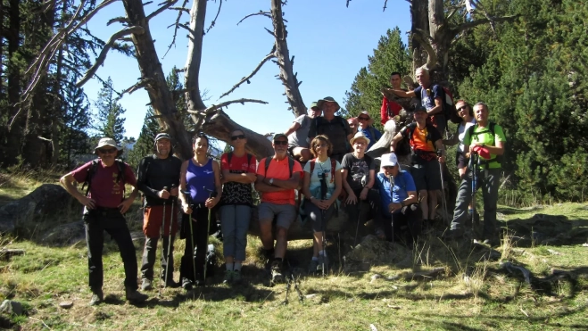 Fin de semana repleto de actividades montañeras. Comenzó este viernes pasado con la celebración por parte del CAS de su día, en el que, entre otros premios, se entregó una mención de honor a título póstumo a José Ramón Monclús por su labor como coordinador de actividades del Club de Montaña Nabaín durante las pasadas dos décadas. Posteriormente, el sábado, el Club Nabaín estuvo presente en la gran marcha reivindicativa al puerto de Canal Roya, en la que se leyeron distintos comunicados y se explicó el aberrante proyecto de unión de las estaciones de Astún y Formigal. Por la tarde de ese día, la investigadora Ana Moreno Caballud en Boltaña, nos brindó una interesante charla con los resultados de sus investigaciones en cuevas del Sobrabe, con preocupantes noticias sobre el cambio climático de nuestro planeta. De esta manera, nos plantamos a primera hora del domingo -en Boltaña, Aínsa, Campo y Benasque- 23 caminantes y el perro Fosco, socios del Club Nabaín y del CAS, junto a algún amigo del CER, para cubrir los aproximadamente 12 kilómetros de que constaba la circular, que partiendo de La Besurta (1.920 metros), subía hasta el Refugio de La Renclusa (2.138 metros) y al collado del mismo nombre (2.281 metros), para descender rápidamente al Plan D'Aiguallut y subir por fin al ibón del Coll de Toro.