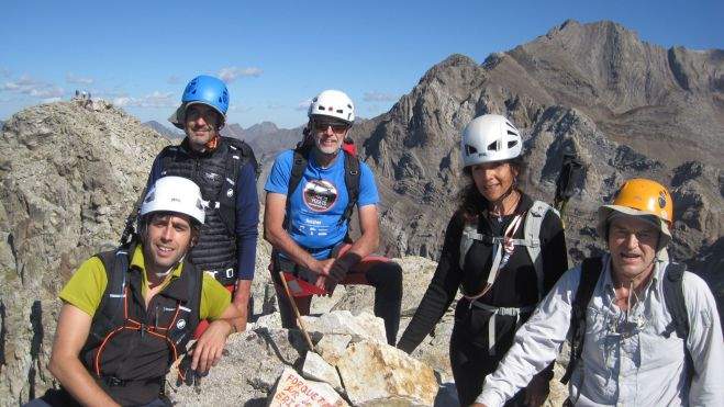Por circunstancias de la vuelta de curso el grupo resultó reducido y eso nos permitió la variante más intrépida en la segunda jornada. En la primera ascendimos por los bonitos lagos de Batisielles al pie de las espléndidas agujas de Perramó, partiendo del valle de Estós, hasta alcanzar el collado de la Plana a 2.702 metros, que se asienta al pie de la gran mole del pico Elscorvets, un 2.904 metros que se alza por una vigorosa trepada y una sucesión de gendarmes cresteando sin dificultad hasta alcanzar su altiva cumbre.