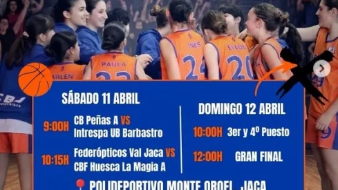 La jornada se abrirá el sábado 11 de abril a las 9:00h con el Peñas A vs Intrespa UB Barbastro. A las 10:15h se disputará el Federópticos Val Jaca ante CBF Huesca La Magia A. De cara al domingo, la jornada comenzará a las 10h con el tercer y cuarto puesto. La gran final se disputará a las 12:00h en el Polideportivo Monte Oroel de Jaca.