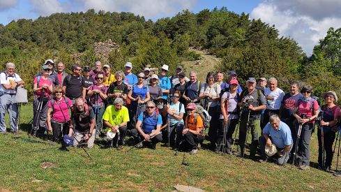 Tras el descanso retomamos la senda que sigue subiendo larga y suave hasta llegar al collado Chaime (1.150 m.) en la Sierra de Los Dos Ríos el punto más alto del día, donde hubo parada para contemplar el paisaje de los dos valles y descanso con fotos, de todo tipo y posición.