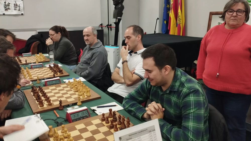 No se puede pedir más emoción y con ella hasta el último momento el Jaime Casas se llevó el título de campeón de Aragón por equipos. A la escuadra montisonense le valía un empate ante su gran rival, el Mylnvestor Casablanca A, y el encuentro terminó con 2-2. Eso sí, no exento de emoción y sufrimiento ya que se inclinó la balanza del lado del Jaime Casas en el cuarto tablero. Daniel Forcén (Jaime Casas) ganó a Diego Adla (Casablanca). En el segundo tablero, Pablo Glavina (Casablanca) ganó a Joaquín Antolí (Jaime Casas) y en el tercero hubo tablas entre Quintín (Casablanca) y Juan Luis Ramiro (Jaime Casas). Y quedaba por ver la resolución de la partida entre Alberto Vela (Casablanca) y Katharina Newrkla. El zaragozano necesitaba la victoria para el título y a la del Jaime Casas le valían las tablas. Ya había pasado bastante tiempo que habían acabado todas las partidas y seguían jugando intentando desequilibrar el jugador del Casablanca una posición que defendió perfectamente su rival. Esas tablas sirvieron para proclamar campeón al Jaime Casas.