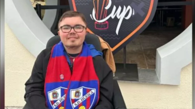 Javier Anca es un aficionado de la SD Huesca que quiere ir a La Romareda a presenciar el derbi del sábado, pero no puede ir porque no tiene un sitio habilitado para su silla de ruedas.