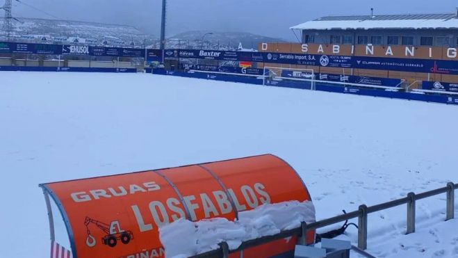 En Sabiñánigo se encuentran a esta hora con el mismo problema. El Joaquín Ascaso, escenario donde el domingo debe recibir el conjunto local al CD Altorricón para la disputa de la jornda 14 de Regional Preferente, está completamente cubierto con un espeso manto blanco. No sería la primera vez que la localidad serrablesa ve un partido de su equipo mientras caen copos de nieve. Sin embargo, la repentina y cuantiosa nevada de las últimas horas ha hecho acumular centímetros sobre el terreno de juego.