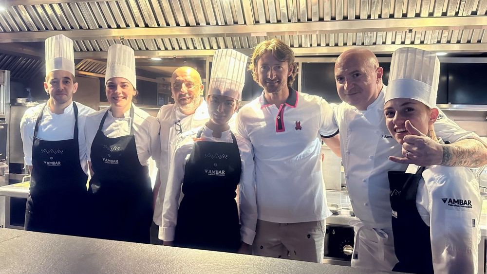 Se encontraba entonces el entrenador en Londres y ha sido ahora cuando ha disfrutado de la experiencia plena de la cocina de los cuñados Ramón Aso y Josetxo Souto y del magnífico servicio dirigido por las hermanas Sierra. El recorrido vivencial por el restaurante le permitió convivir con los cocineros, gozar de la magia de la Torre de Mediano con la nube voladora que acaba depositándose para deleite de los sentidos. Los productos de temporada como esos prodigiosos tomates de Aínsa, los bocados de berenjenas o las elaboraciones con caza como ese buñuelo de setas con lomo de corzo, la liebre al chocolate con mojo mejicano o el arroz a la brasa con codorniz a la francesa y trufa de verano.