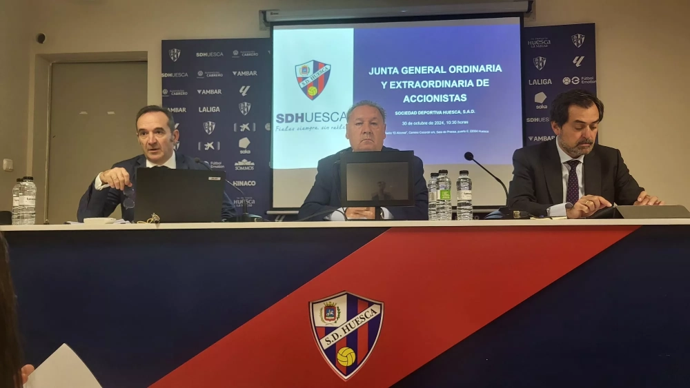 Este miércoles se ha celebrado la junta ordinario y extraordinaria de accionistas de la SD Huesca en la sala de prensa José Luis Trallero. En ella se ha aprobado una ampliación de capital de 9,2 millones de euros gracias a la aportación de 6,1 millones procedentes de los Grupos Costa y Arqa, además de otros 3,1 millones abiertos a los 900 accionistas actuales. Cada accionista puede adquirir 10 acciones.