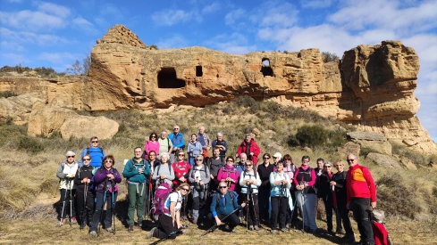 Ecología y geología se unen en la comarca de Los Monegros para dejar un territorio digno de visitar y disfrutar. Eso es lo que hicieron los 43 senderistas de la sección Rutas de Peña Guara que tras media hora de autobús emprendían la excursión cruzando la población de Fraella. Varias marcas verticales señalan diversas rutas que se pueden realizar en la zona. Cogemos la que se dirige a La Andeta y la Fuente de los Recuerdos, pero al llegar al desvío seguimos de frente unos cientos de metros; en una curva dejamos la pista y tomamos un poco de altura hasta encontrar un estrecho sendero que viene de Fraella; aquí nos reunimos con parte del grupo que han decidido avanzar y disfrutar subiendo unos cantiles por unos peldaños metálicos.