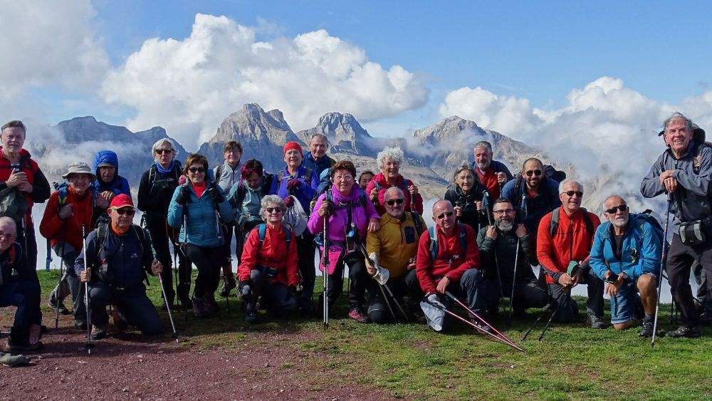 Comenzamos a descender pasando junto al estanque que suministra agua a los cañones de nieve y al lado del trampolín de saltos y fuimos recorriendo todo el arco que conforman las pistas de esquí hasta llegar al ibón de Las Truchas. A pesar del seco verano su nivel de agua era apreciable y en sus verdes orillas nos pusimos a comer la mayoría, ya que algunos decidieron continuar hasta el collado de Astún en la falda del pico Malacara. Eran cerca de las dos de la tarde.
