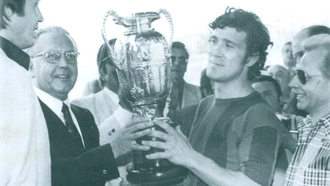 Luis Ausaberri fue el “gran capitán”. Llegó a Huesca con 26 años. Venía ya del fútbol profesional porque estuvo una temporada en el Logroñés y tres en el Oviedo, en Segunda División. Aterrizó en el campo de San Jorge en la temporada 70-71 y se despidió en la 79-80. Es otro legendario lateral diestro, que se caracterizaba por su carácter ofensivo y por su poderío en el lanzamiento de faltas y penaltis, que le valieron no pocos goles y puntos al Huesca. En total vistió de azulgrana en 417 partidos, de los cuales 359 fueron de liga, 43 de Copa, 7 del Campeonato de Aficionados y 8 de promoción, entre ellos la llorada eliminatoria con el Guadalajara que supuso el descenso del equipo a Preferente. Su mejor recuerdo se produjo un año después, en la 73-74, cuando levantó la copa de campeón de España de Aficionados. Ganó multitud de trofeos a la regularidad y destacó también como goleador. Pasó del campo al banquillo, iniciándose en el filial, Huesca B, y también a los mandos del primer equipo. Compatibilizó su devoción por el fútbol con su trabajo en la impresión y se jubiló en la banca. Hizo de Huesca su vida y su patria.