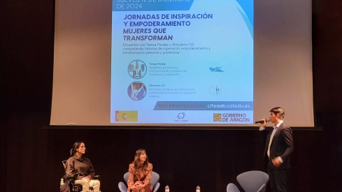 Una auténtica lección de vida. Eso lo que han impartido este jueves 12 de diciembre las deportistas Teresa Perales y Almudena Cid. Ambas han participado en las Jornadas de Inspiración y Empoderamiento del Centro de Profesorado Ana Abarca de Bolea y que se han celebrado en el Salón de Actos de la Diputación Provincial de Huesca. Un evento único diseñado para motivar, reflexionar y aprender de experiencias de superación y liderazgo.