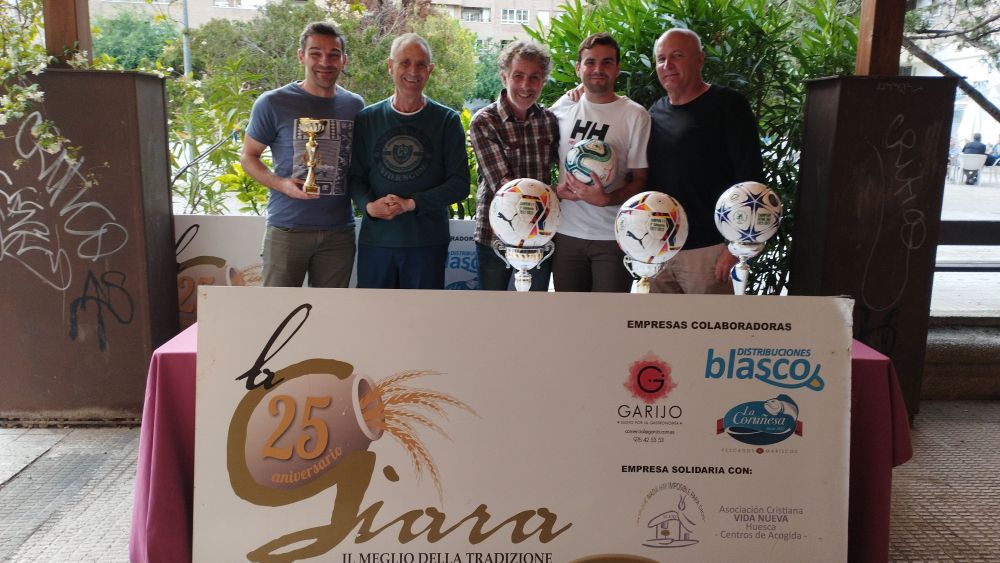 El pasado jueves 1 de junio tuvo lugar la entrega de trofeos a los campeones de las diferentes categorías de la Liga Municipal "La Giara" de Fútbol 7 y Fútbol Sala. El acto, presidido por Mariano Claver y Cuco Lanau, en representación de la A. D. Bolscan, contó con representantes de varios de los equipos participantes, entre ellos los campeones de esta temporada, y de los árbitros. La celebración tuvo lugar en el Restaurante La Giara, que colabora con la organización de la competición. Mariano Claver aprovechó el evento para agradecer a todos los que hacen posible que esta Liga Municipal se dispute en la ciudad de Huesca, más aún cuando el año pasado, por problemas de salud, pudo haber desaparecido.