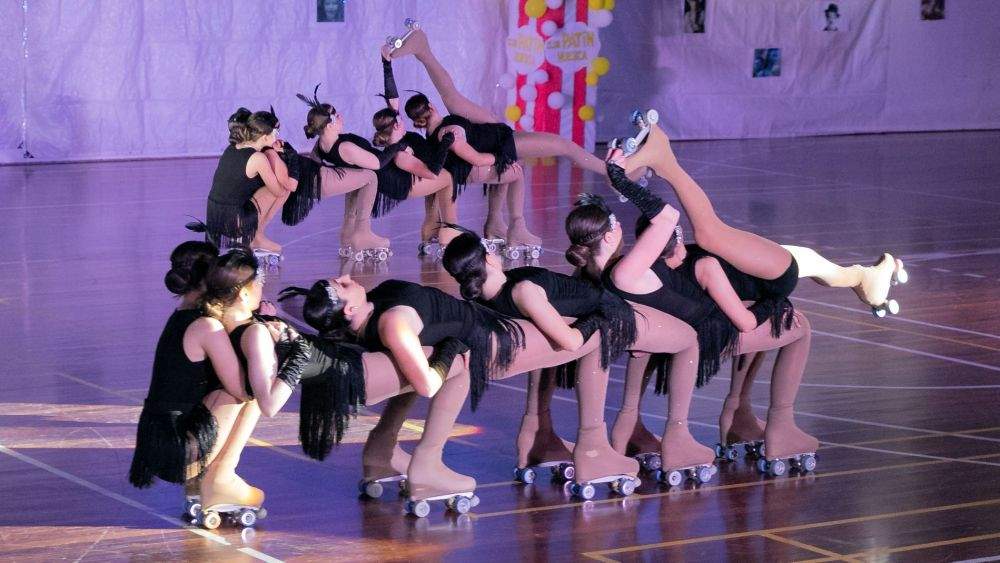 “Patinamos de cine” comenzó, como no puede ser de otra manera, en un cine con los trailers de diferentes películas por el cuarteto show, le siguió Charles Chaplin que realizó el grupo de viejas glorias, les seguía Indiana Jones por el nivel 2, la familia Addams con patinadoras del nivel 3, como no podían faltar en todo cine las palomitas de maíz fue el siguiente grupo en actuar por un grupo de patinadores/as del nivel 1 que nos dejaron un buen sabor de boca.