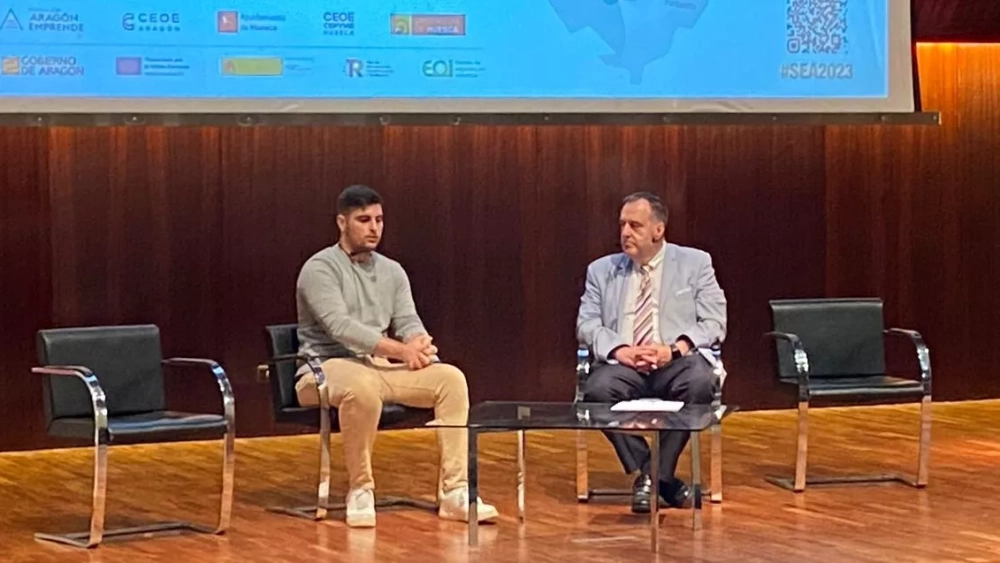 El locutor oscense de 22 años Sergio Ferra ha demostrado sus excelentes cualidades como narrador en el Foro Bombillas Rotas dentro de la Semana de la Persona Emprendedora en Huesca en el final de su conferencia en el que ha sido tras su alocución inicial interpelado por el conductor del acto, Javier García Antón.