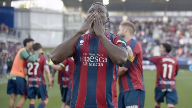 La lata la abría Soko con una chilena de bandera. Eso ha desatado la alegría en El Alcoraz, que ha sido el de las grandes citas de hace no tanto. Javi Hernández ha asistido al camerunés: el chaval ha tenido que afanarse para salvar una pelota que se marchaba por línea de fondo. Por un pelo no ha salido ese balón y así lo ha visto el VAR. Pero al final, gol. Un gol que ponía líder al Huesca.