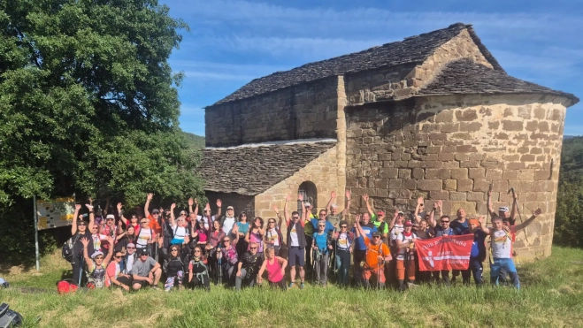 En medio de un sol de los que demanda hidratación, el grupo se dirigió a Centenero y paró en el refugio forestal. La segunda ermita de la jornada fue la de Santa Isabel, que suscitó la admiración de todos por el precioso ajedrezado jaqués en su portada. Un románico fascinante en un templo que merece la pena visitar.